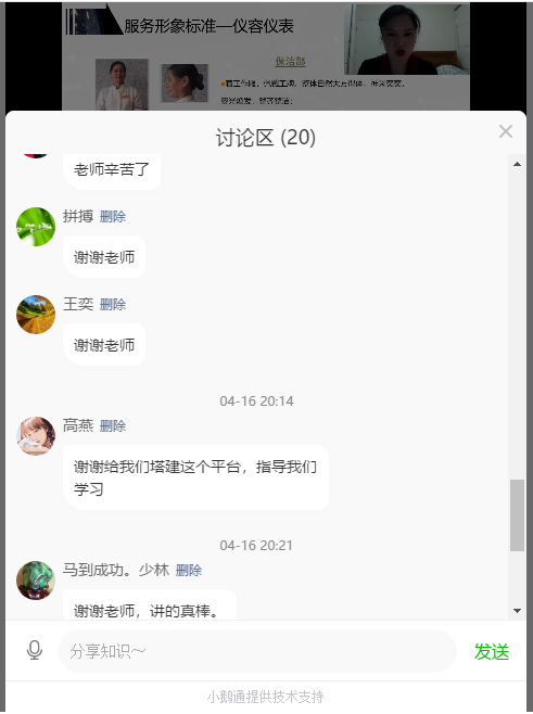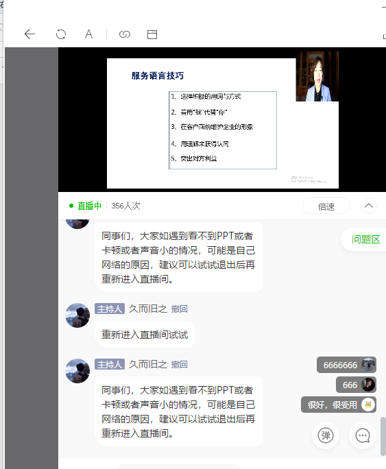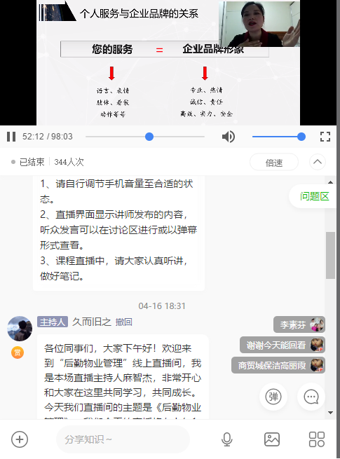 內(nèi)蒙古才路人力資源服務(wù)有限公司為了提高對合作單位的服務(wù)水平,提升勞務(wù)派遣和勞務(wù)外包人員綜合能力素質(zhì)。于2020年4月16日-4月17日為所屬不同崗位的員工進(jìn)行為期兩晚的后勤物業(yè)管理、服務(wù)禮儀的線上培訓(xùn)課程。后勤物業(yè)管理的參訓(xùn)學(xué)員為保安、保潔、大師傅、鍋爐工、司機(jī)。服務(wù)禮儀參訓(xùn)學(xué)員為大廳經(jīng)理、客戶經(jīng)理、柜員、帶有部分大堂經(jīng)理崗位職責(zé)的保潔。本次參訓(xùn)單位為察右后旗聯(lián)社、興和縣農(nóng)村信用合作聯(lián)社、中國銀行新華支行、化德縣農(nóng)村信用合作聯(lián)社、鑲黃旗農(nóng)村信用合作聯(lián)社、內(nèi)蒙古維恩物業(yè)、科達(dá)鋁業(yè)等十多家合作客戶,其中觀看直播突破500人次,觀看回放100多人次。在教學(xué)雙方的共同努力下,順利的完成了培訓(xùn)任務(wù),并達(dá)到了以下預(yù)期的培訓(xùn)目標(biāo)。